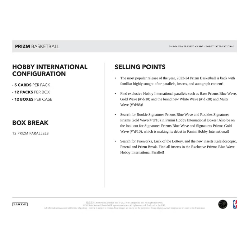 - The most popular release of the year, 2023-24 Prizm Basketball is back with familiar highly sought-after parallels, inserts, and autograph content!